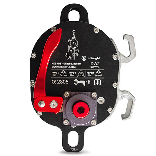 The At Height DW2 Drill Winch is a compact device for lifting and lowering. It handles both people and materials in work-at-height, rescue, rigging, and load-handling. The winch is certified by a Notified Body to the Machinery Directive 2006/42/EC Annex 4. It meets all Essential Health and Safety Requirements of Annex 1. The unit weighs just 2 kg, combining portability with strong performance. It features an 8:1 gear ratio and a becket with a minimum breaking strength of 12 kN. The DW2 works with EN1891A or EN564 ropes from 8 mm to 11 mm. It supports loads from 50 kg (8 mm rope) up to 200 kg (11 mm rope). The winch uses precision-engineered components. Controlled lifting is performed with a high-torque drill (≥100 Nm, non-impact). Smooth lowering is managed with the manual lever. Each unit is individually serial numbered for traceability. Packaging includes a durable hard case and spare hex keys. For best results, use a brushless drill with over 100 Nm of torque and a 5.0 Ah or higher battery.